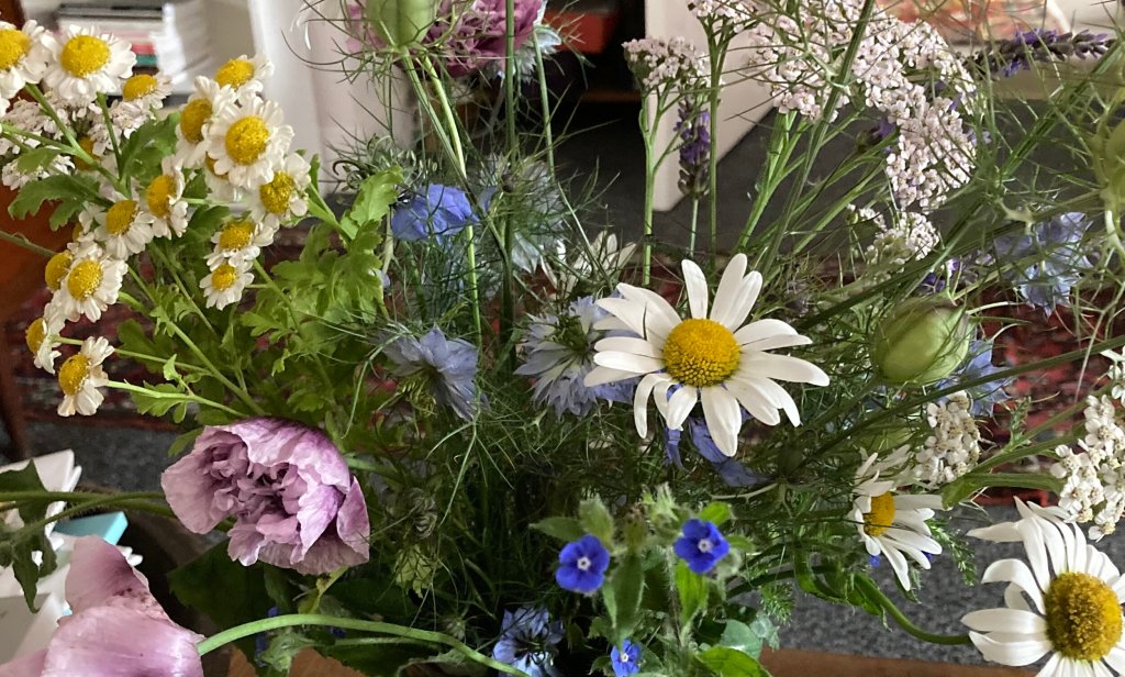 Poetry will have its own summer, too, as after all poetry is a form of summer. Like I did last year, I’m going to keep it all going here. I’m running a short summer term with three different sessions you can join, and they’re all online so you can attend from practically anywhere. (As you can see above, I have brought some of the summer inside with me so I can still have it when I’m working.)